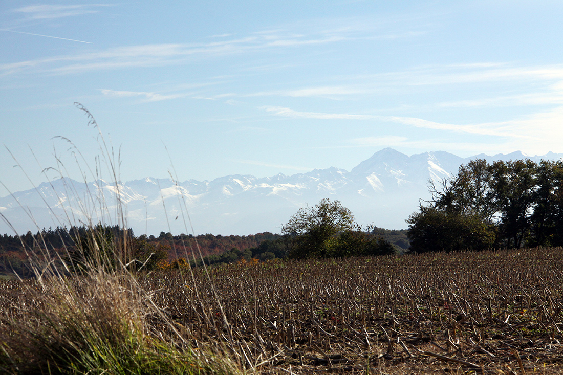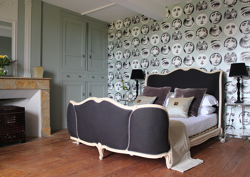 Un poêle à bois rétro occupe le foyer de la cheminée de marbre d'origine. Cette suite a vue sur le jardin et sur les Pyrénées.